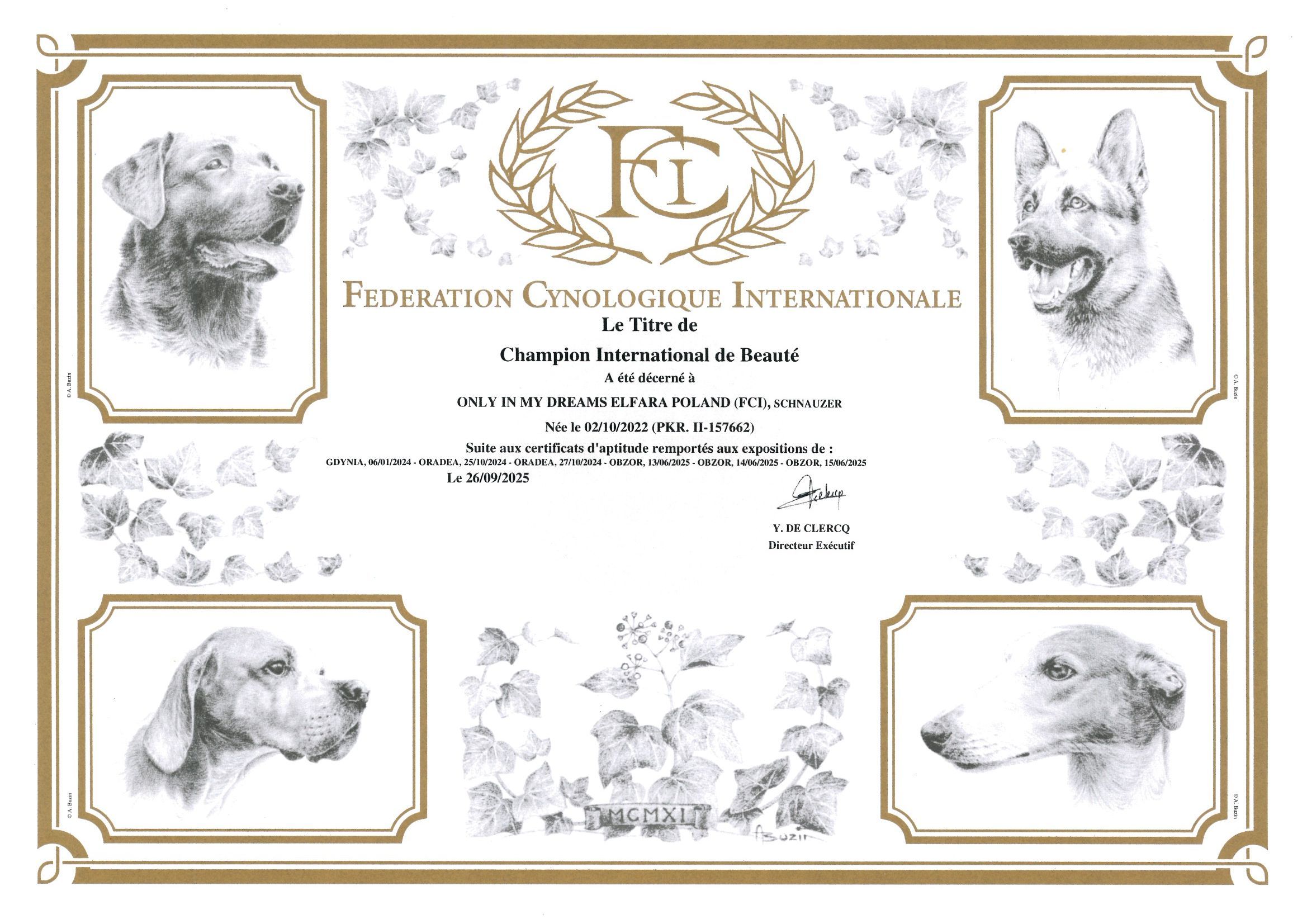 ONLY IN MY DREAM Elfara Poland FCI- kl.Championów, 3xv1, 3xCACA, 3xCACIB,3xBest Female,