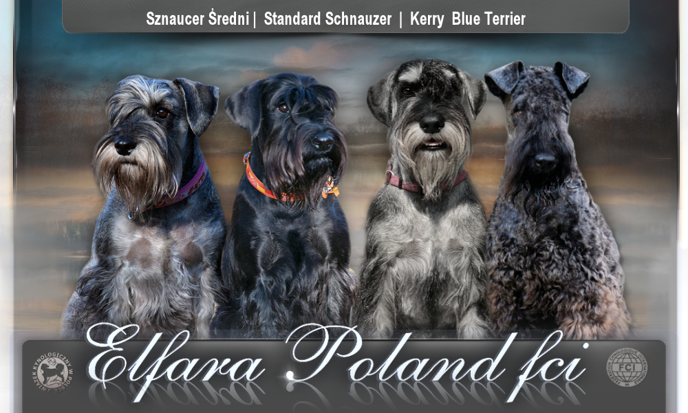 FLER Adekatos Poland NAJLEPSZA SUKA HODOWLANA P&S 2014 BETTY i IVAN Najlepsza Para Hodowlana Klubu Sznaucera 2019'20'21'22 BETTY i IVAN Najlepsza Para Hodowlana Asenovgard Bułgaria 2020 WINNIE Elfara Poland FCI NAJLEPSZA SUKA HODOWLANA P&S'20'21 Witamy na stronie hodowli Sznaucera średniego i Kerry Blue Terriera Życzymy miłego oglądania :)