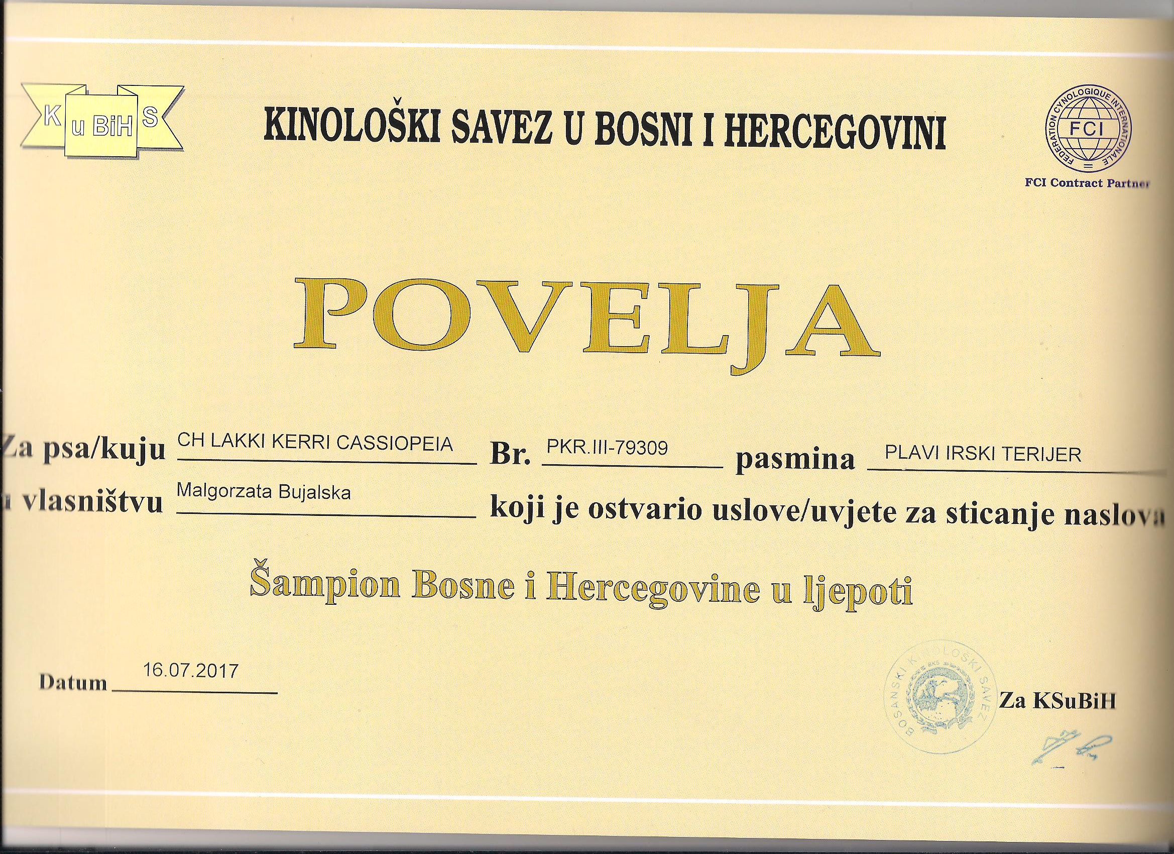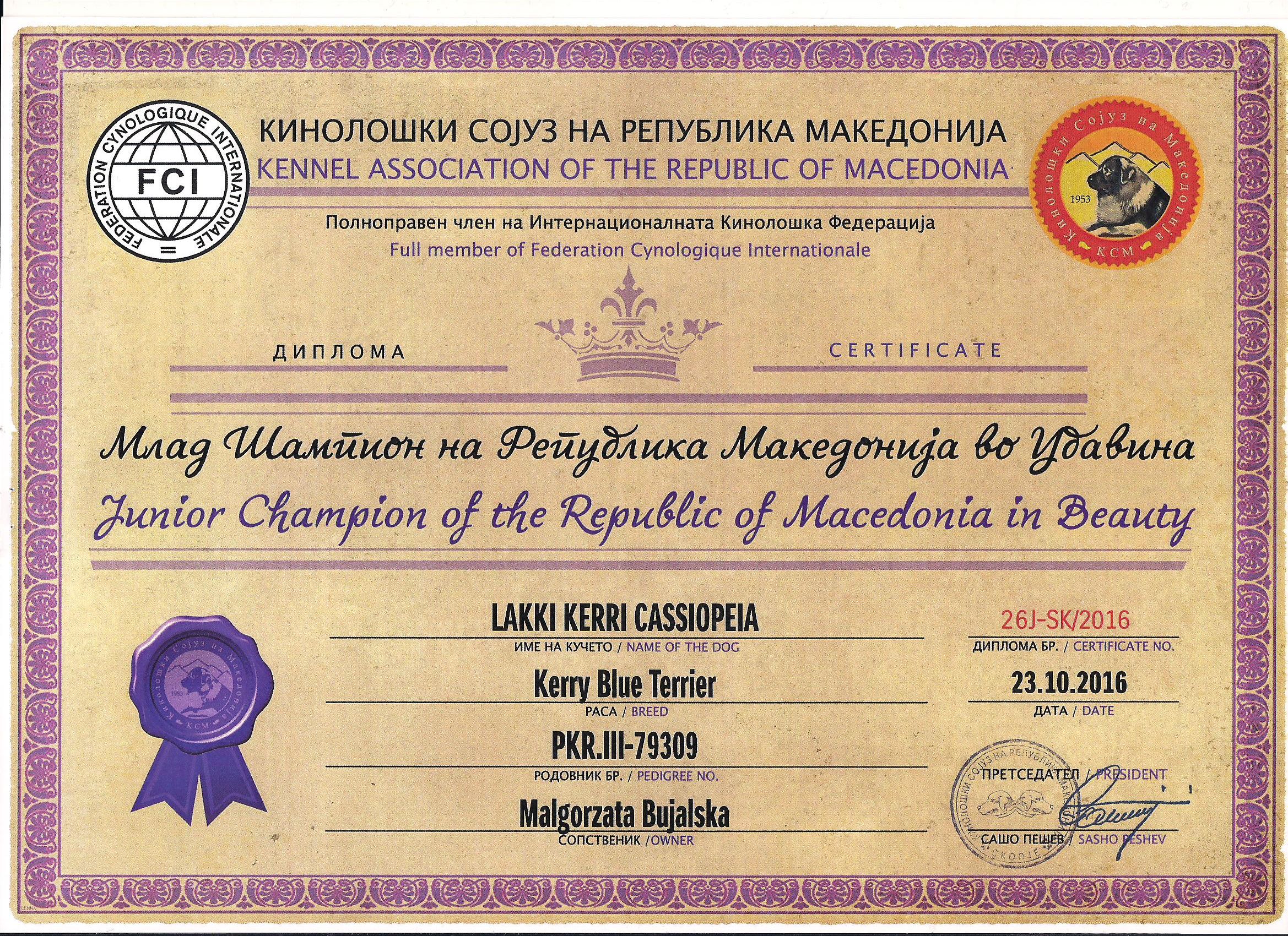 Nominacja na Cruft's 2017 Skopie'16